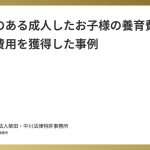 長年苦労をされてきた依頼者様でしたが、婚姻費用が支払われるようになり、やっと落ち着いて生活をすることができました。本件のように、お子様が成人されていても就労できない事情があるときには、お子様の養育費相当額を請求することが可能な場合があります。諦めずに、弁護士にご相談いただければと思います。